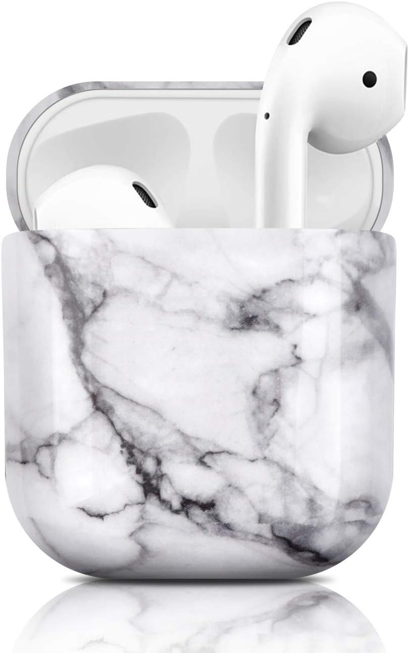 Protective Case Compatible with AirPods 1&2, [Hard PC] Marble Airpods Cover Case Shockproof Portable Accessories for AirPods Earphones Suitable for Girls Boys - White