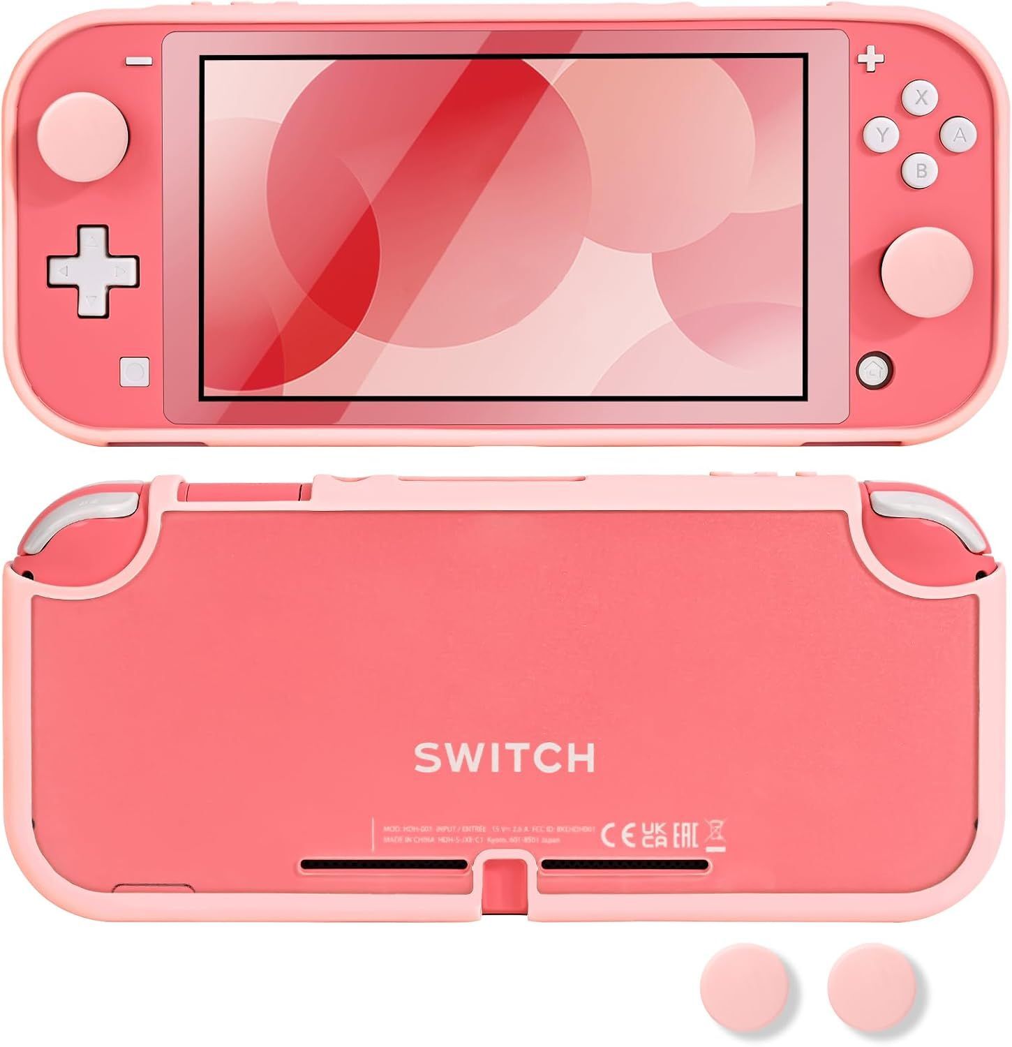 Case for Switch Lite,Anti-Scratch Frosted Translucent White Protective Shell Cover PC Shockproof Protector Case with 2 pcs Thumb Grip Caps,Pink
