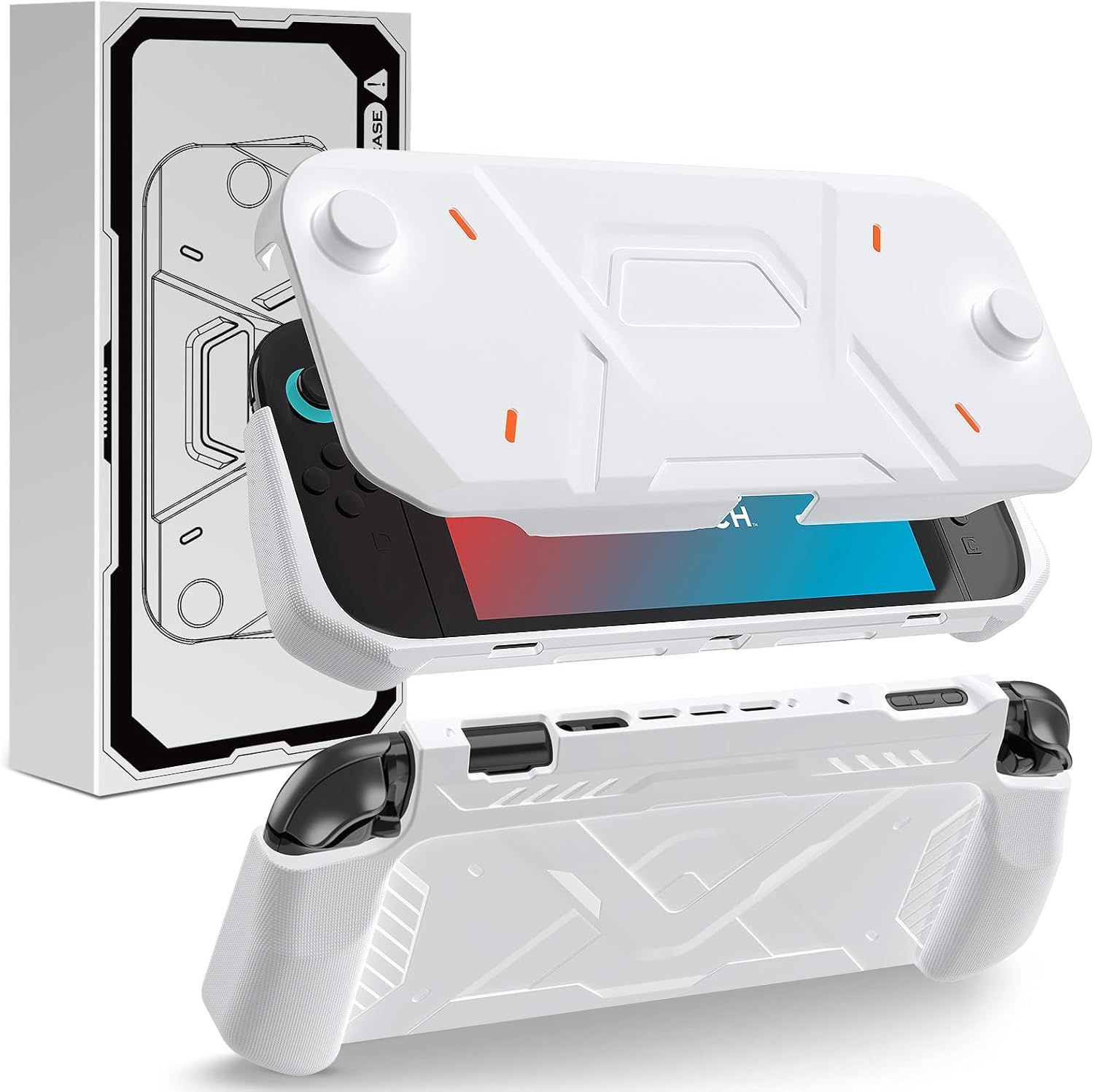 Case for Nintendo Switch 2,Cmprend 1 Protective Case + 2 Handle Cases,PC + TPU Composite Materials,Anti-Scratch and Shock Absorbing Full Protection-White