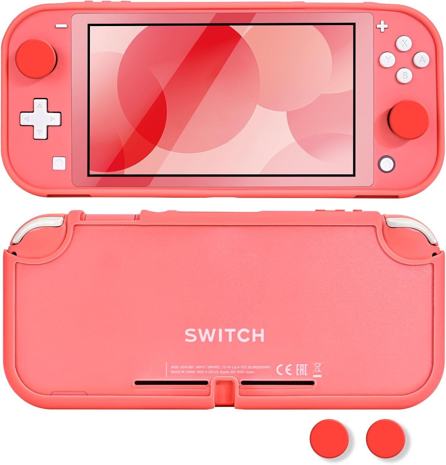 Case for Switch Lite,Anti-Scratch Frosted Translucent White Protective Shell Cover PC Shockproof Protector Case with 2 pcs Thumb Grip Caps,Coral Red