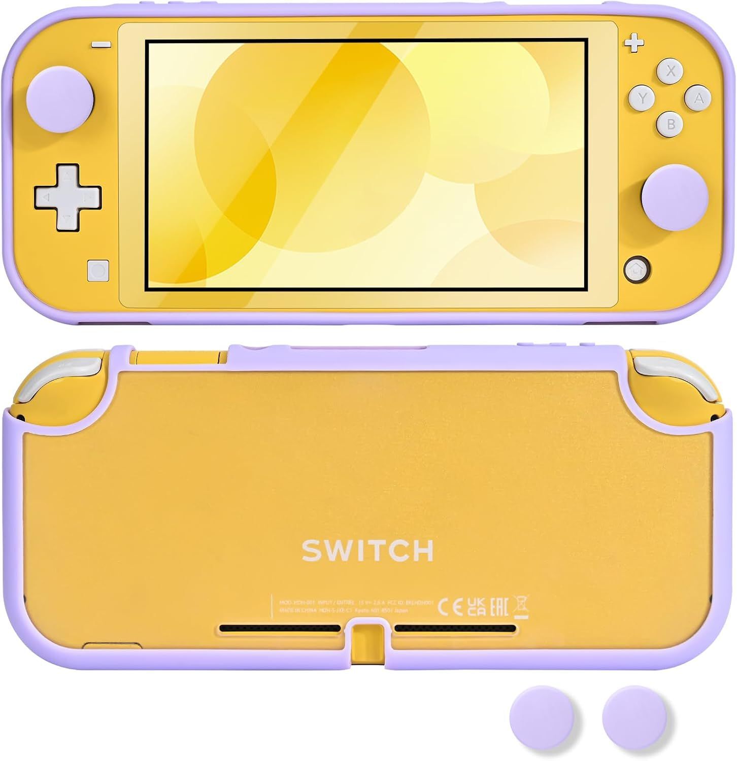 Case for Switch Lite,Anti-Scratch Frosted Translucent White Protective Shell Cover PC Shockproof Protector Case with 2 Pcs Thumb Grip Caps,Purple