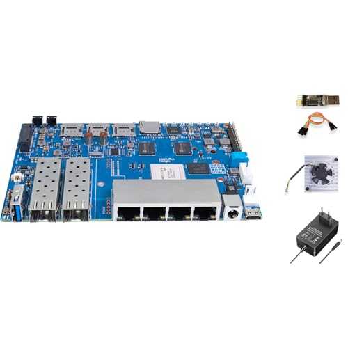 Banana Pi BPI-R4 WiFi 7 Routeur Carte de développement avec puce MediaTek MT7988A, 4 Go de RAM et 8 Go eMMC intégrés, 2 emplacements SFP 10 Go, 4 ports réseau Gbe (paquet avec WiFi 7 et mallette en