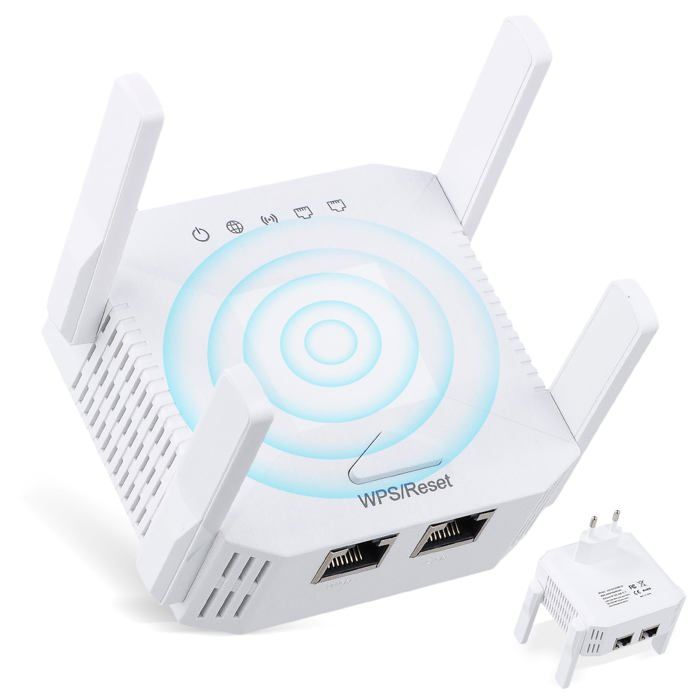 Répéteur WiFi 1200Mbps Amplificateur WiFi Double Bande 24GHz et 5GHz 4 Antennes WiFi Range Extender Compatible