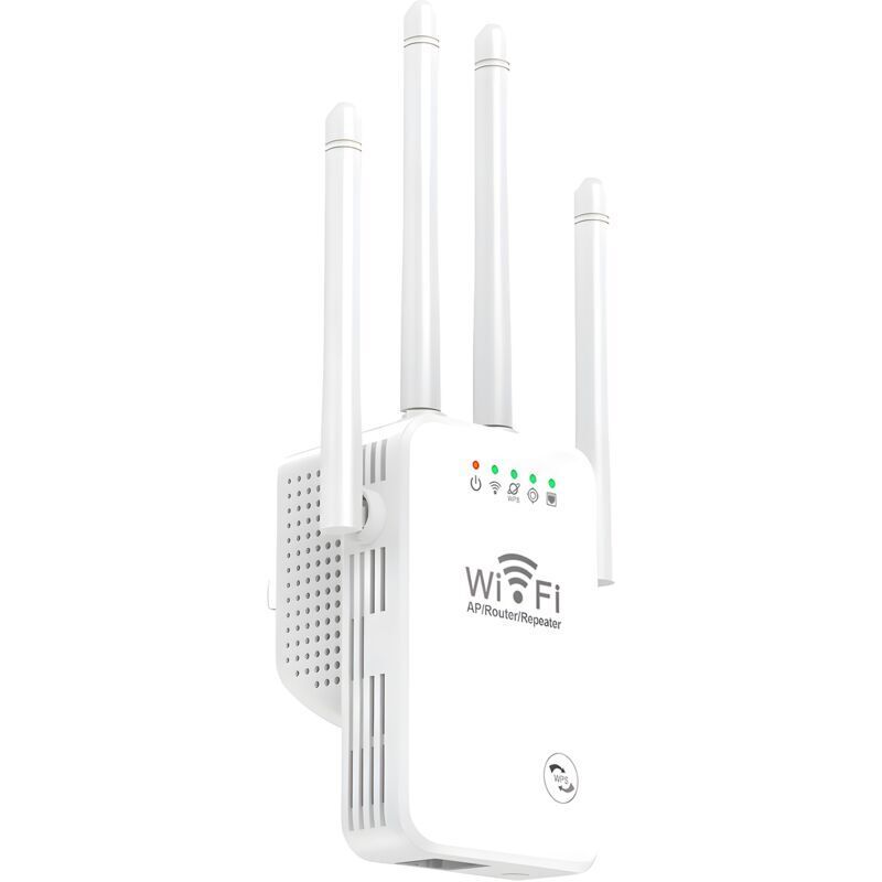 WiFi Repeater WiFi Amplifier White 1200Mbps Dual Band 2.4G/5G, Wi-Fi Signal Amplifier, 2 LAN/WAN Ports, 4 Antennas, WiFi Extension for Home and Office, Repeater/Router/AP