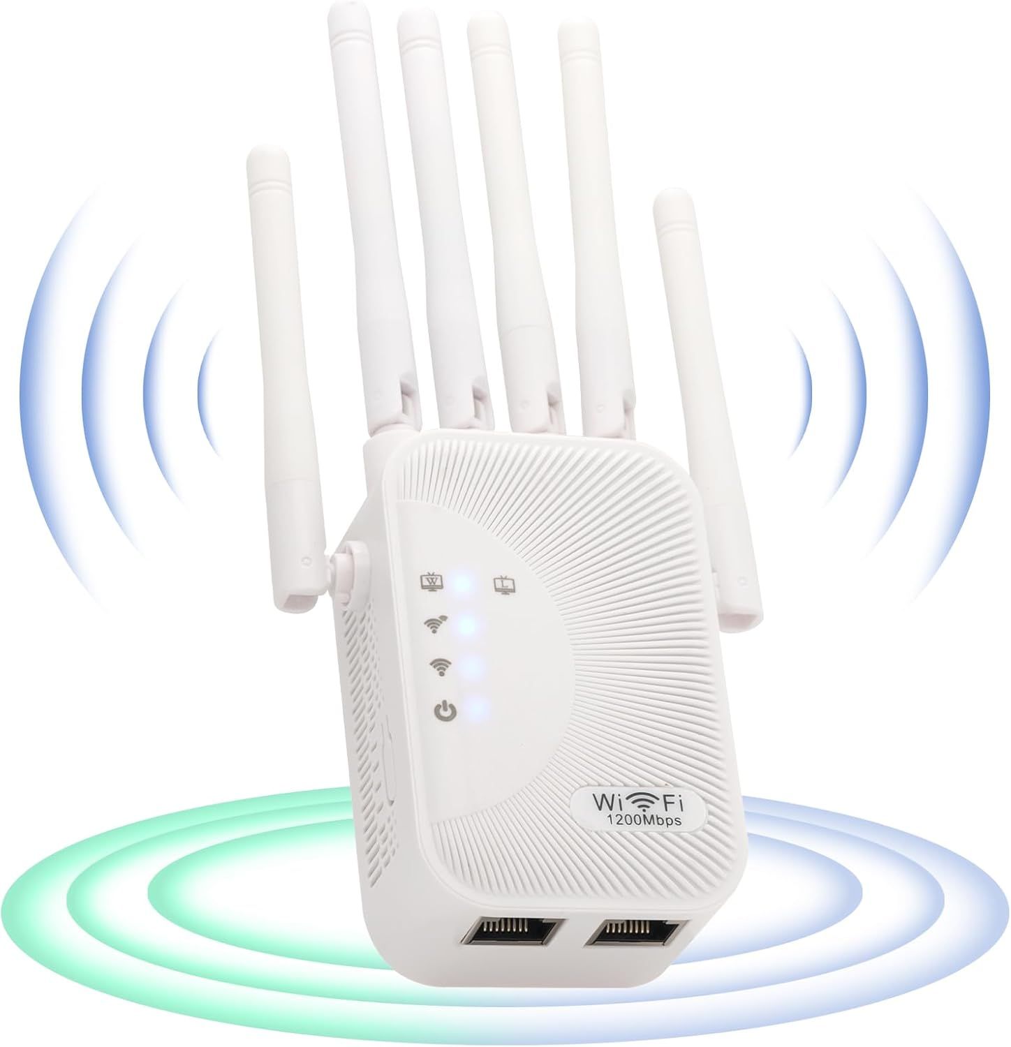 Powerful WiFi Amplifier, Dual Band 1200Mbps WiFi Repeater, WiFi Amplifier, Powerful WiFi Repeater, Ethernet Port, Outdoor WiFi Repeater Compatible All Routers