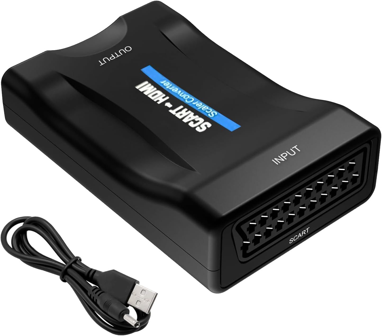 Qneneam Scart vers HDMI Convertisseur, Péritel vers HDMI Adaptateur, Scart Converter Audio Vidéo HD 720p/1080p pour HDTV STB VHS Xbox PS3 Sky Blu-Ray DVD Wii TV VCR, Compatible PAL NTSC Plug and Play