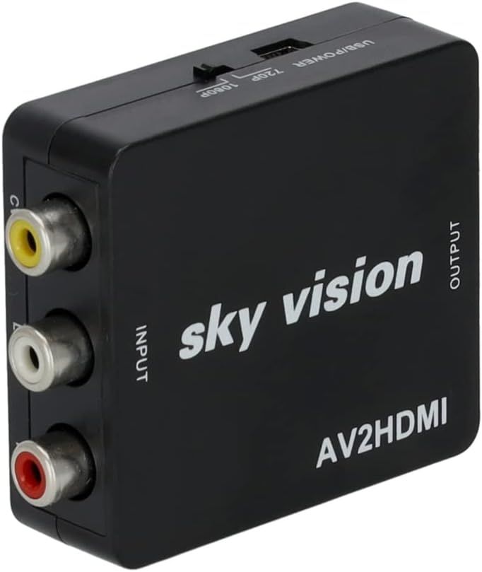 Sky Vision Adaptateur RCA vers HDMI, AV/RCA/FBAS vers HDMI, convertisseur Audio vidéo, 1080p, PS2, Wii N64, Prend en Charge PAL/NTSC, Plug and Play, Noir