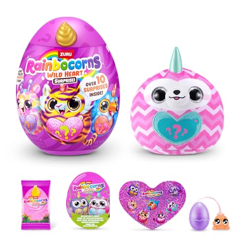Rainbocorns Wild Heart Surprise (Zèbre) de ZURU – Peluche de Collection avec Surprises, Œuf Mystère pour Filles et Garçons 3 Ans+, Rose
