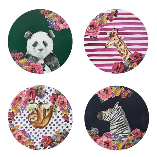 Mikasa Wild at Heart Set de 4 Sets de Table Ronds en liège, 25 cm, résistants à la Chaleur, antidérapants et lavables, avec Motifs d'animaux