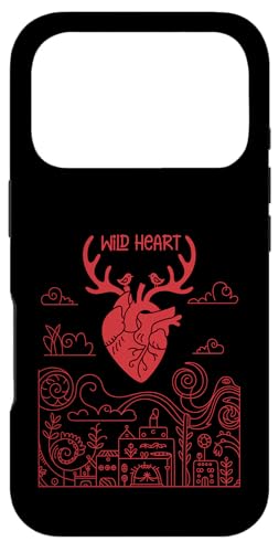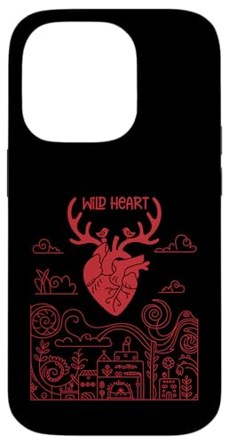 Ligne d'art Folklorique Wild Heart Antlers Nature Village Coque pour iPhone 14 Pro
