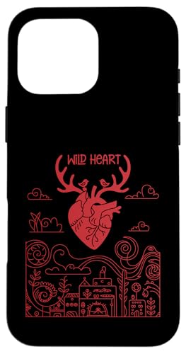 Ligne d'art Folklorique Wild Heart Antlers Nature Village Coque pour iPhone 16 Pro Max