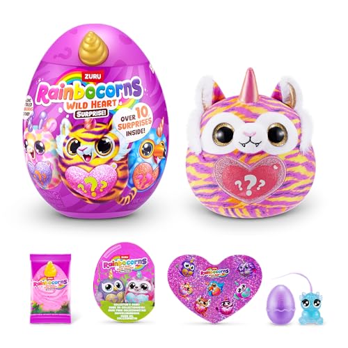 Rainbocorns Wild Heart Surprise (Tigre) de ZURU – Peluche de Collection avec Surprises, Œuf Mystère pour Filles et Garçons 3 Ans+