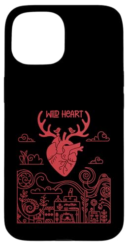 Ligne d'art Folklorique Wild Heart Antlers Nature Village Coque pour iPhone 15