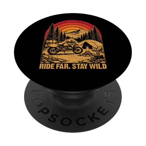 Ride Far Stay Wild Moto Aventure Nature Rétro PopSockets PopGrip Adhésif