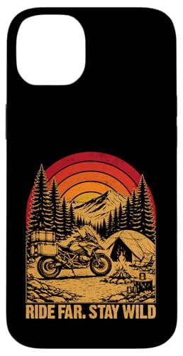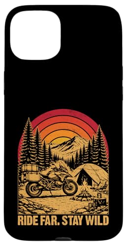 Ride Far Stay Wild Moto Aventure Nature Rétro Coque pour iPhone 15 Plus