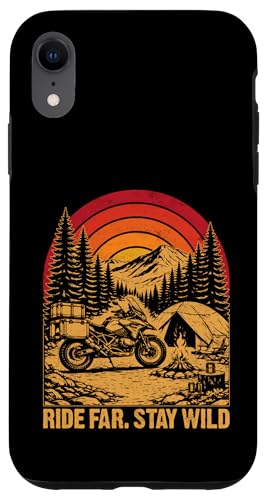 Ride Far Stay Wild Moto Aventure Nature Rétro Coque pour iPhone XR