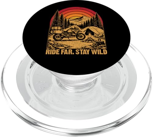 Ride Far Stay Wild Moto Aventure Nature Rétro PopSockets PopGrip pour MagSafe