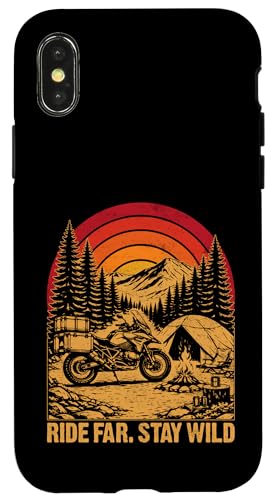 Ride Far Stay Wild Moto Aventure Nature Rétro Coque pour iPhone X/XS