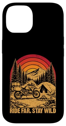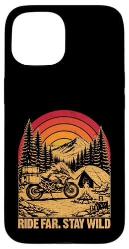 Ride Far Stay Wild Moto Aventure Nature Rétro Coque pour iPhone 15