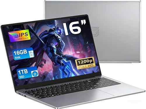 FUNYET Ordinateur Portable 16 Pouces, 16 Go de RAM, SSD 1 to, Win 11 Pro Laptop,2026 PC Portable Processeur N150 (jusqu'à 3,6 GHz), 6000 mAh, FHD 1920 x 1200 Notebook,Clavier rétroéclairé, USB 3.0