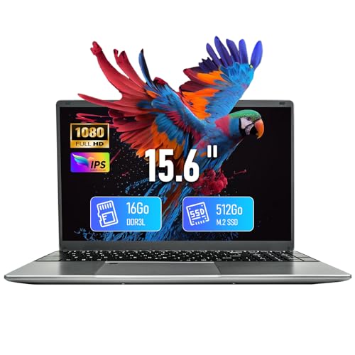unbholkk Ordinateur Portable 15,6 Pouces, 16 Go RAM 512 Go SSD, Celeron 5205U 5000mAh Grande Autonomie Touch ID PC Portable Écran IPS Laptop Win 11 avec WiFi5 BT USB3.0 pour Bureau Étudiant Loisir