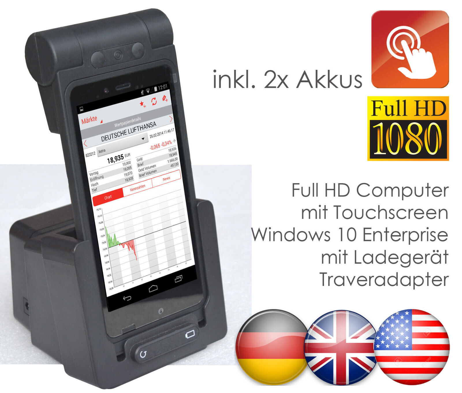 Micro Ordinateur IPS Full HD WLAN Usb-C Windows 10 Bluetooth GPS+ Ladedock Neuf