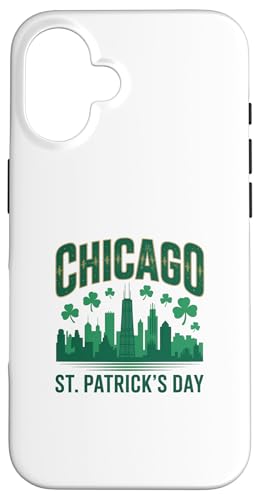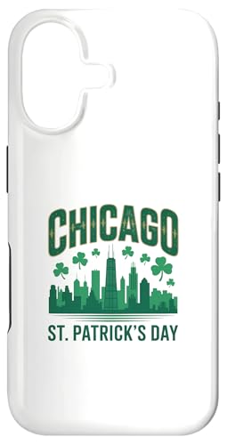 Chicago St Patrick Day Vert Skyline Parade Design Coque pour iPhone 16
