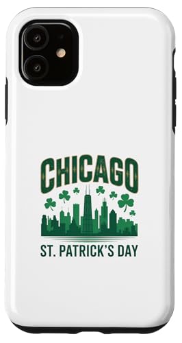 Chicago St Patrick Day Vert Skyline Parade Design Coque pour iPhone 11