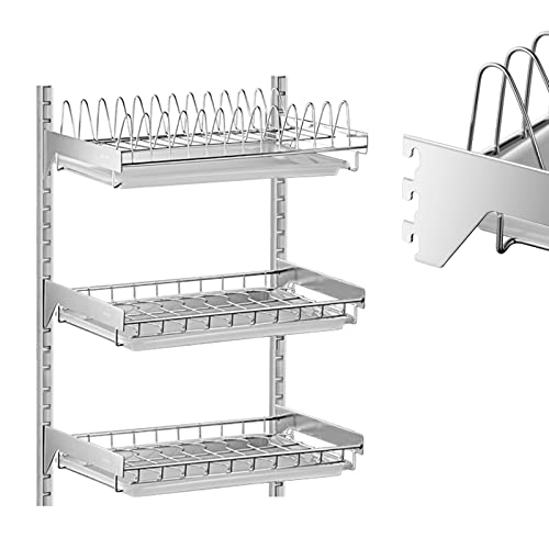Générique Stainless Steel Dish Drainer Rack Wall Mounted Kitchen Drying Rack for Bowls Cutlery Utensils Storage Cup Plate Holder Ideal Sink Drain Board for Wine Glasses,6135 Metallic 3 Tier