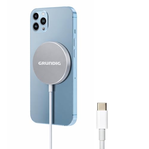 Grundig Chargeur Induction Iphone - Chargeur sans Fil Iphone Magnétique - Chargeur Iphone Induction 15W - Magnetic Wireless Charger - Argent