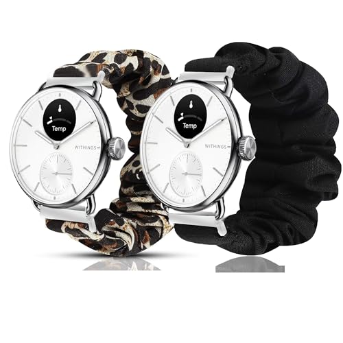 Blueshaweu Bracelet Compatible avec Wit-hings Smartwatch,en Tissu Imprimé Élastique Bracelet de Montre du Wit-hings Scanwatch 18mm/20mm Smartwatch (18mm, 2 packs-Noir+Léopard)