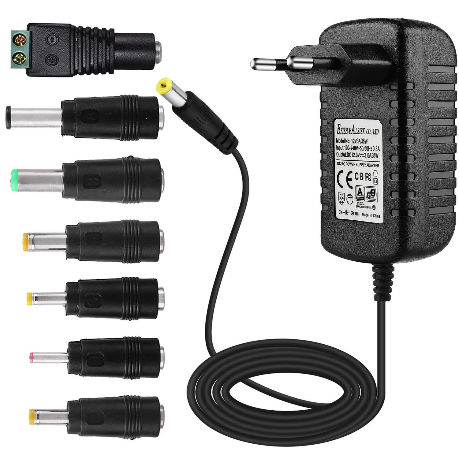 Dc 12V 3A 36W Netzteil,Netzstecker Für 12V Kleine Elektronische Geräte,Cctv-Kamera,Wlan-Router,Hub,Led-Streifen,Telekom,Speedport,Scanner,Schalter,Türklingel+7 Verschiedene Dc-Stecker[Z2751]