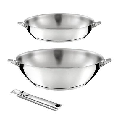 Cuisinox Eclipse - Lot 3 pièces Wok 28 cm, Poêle 24 cm et Poignée amovible