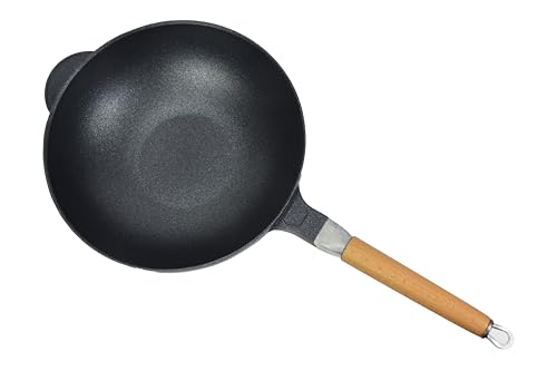 poêle à induction pour wok de 30 cm avec revêtement en granit et poignée en bois amovible