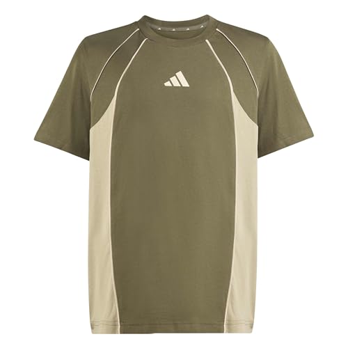 adidas Unisex Kinder Color Block T-Shirt, Olive strata/Wonder Cargo/Crystal Linen, 7-8 Years