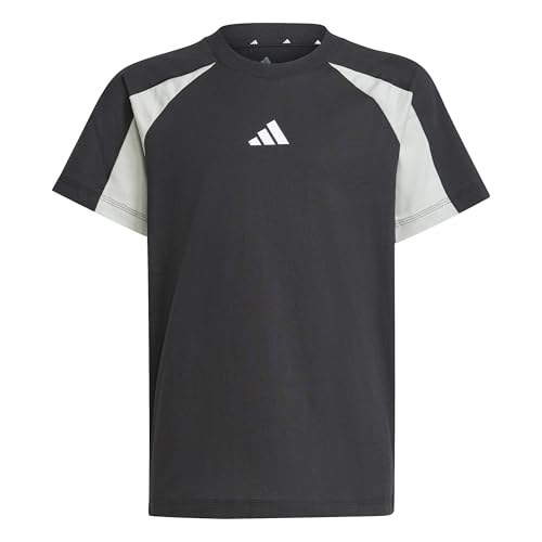 adidas Mixte Enfant Seasonal Essentials Colorblock T-Shirt, Black/Wonder Silver/White, 11-12 Years