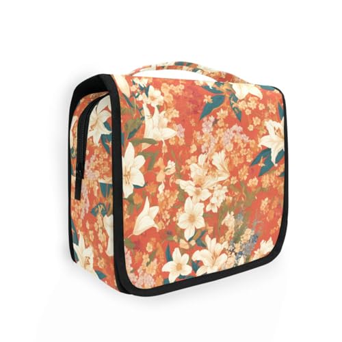 Vintage Lily Flowers Orange Japanese Woodblock Prints Travel Bag with Hanging Hook Stylish Case Cosmetic Makeup Bag Travel Size Accessories