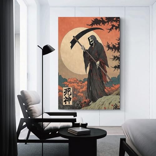 sinyumoney Death God in Japanese Woodblock Style Impression Sur Toile Pas Chère Impressions Pour Occasions Spéciales Art Sur Toile 12x18inch(30x45cm)