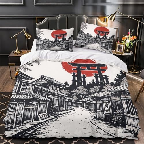ZAWPPEUIO Japanese Street Parure Lit 3D Microfibre 3Pcs 2xTaies Douce Woodblock Print Housse Couette Hypoallergique Entretien Fac for Garçons Filles Super King(260x220cm)