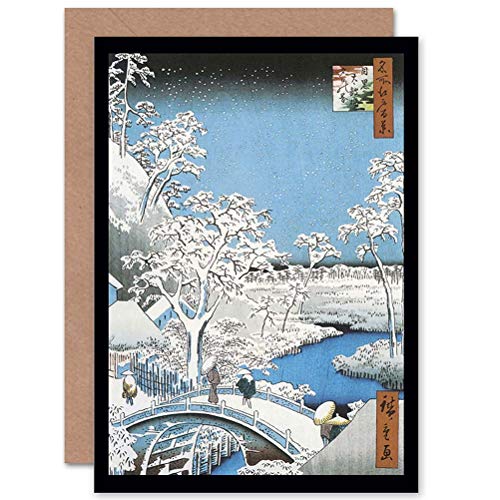 Wee Blue Coo Painting Japanese Woodblock Winter Bridge Over River Sealed Greeting Card Plus Envelope Blank inside La peinture Japonais Bois Hiver Pont rivière
