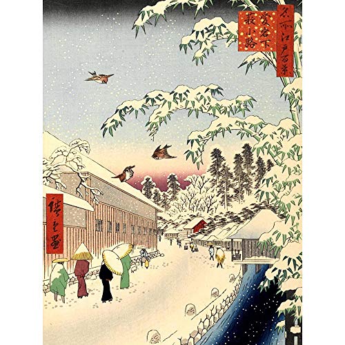 Wee Blue Coo Painting Japanese Woodblock Winter Street Wall Art Print Mur Décor 30 x 41 cm