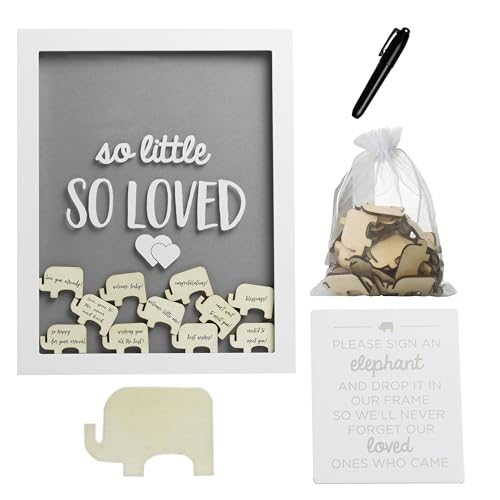 Pearhead So Little So Loved Wooden Elephant Token Frame, Little Wishes Signature Baby Shower Guestbook Alternative, Gender-Neutral Pregnancy Keepsake With 65 Signature Tokens and Pen, Gray and White