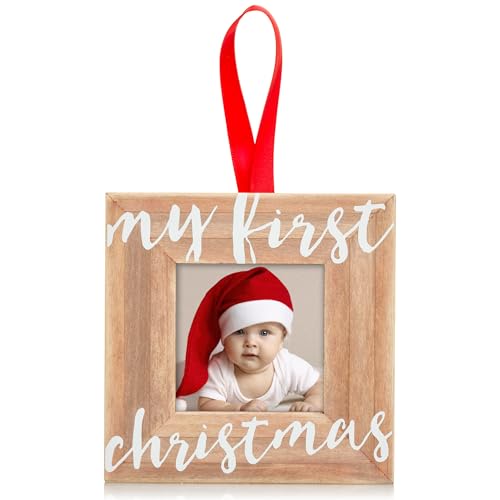 Pearhead Baby’s First Christmas Wooden Picture Frame Ornament, Newborn Milestone Keepsake Photo, Gift for New and Expecting Parents, Rustic My First Christmas Ornament