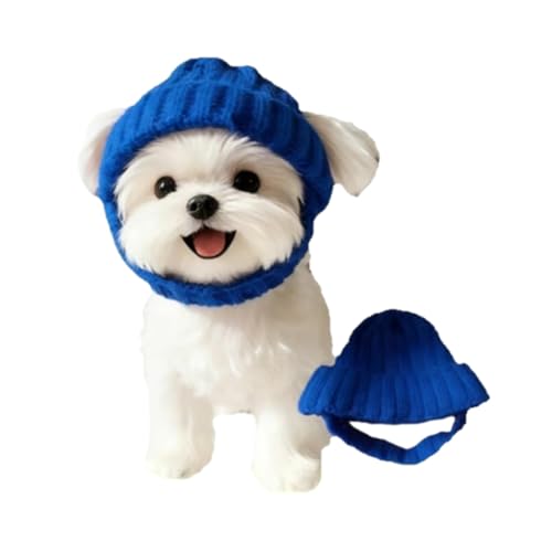 Red Wool Knit Dog Beanie with Ear Flaps,Pet Warm Winter Hat,Windproof Comfortable Soft Breathable Dogs Beanies,Soft Warm Winter Hat for Small Dogs (Blue)