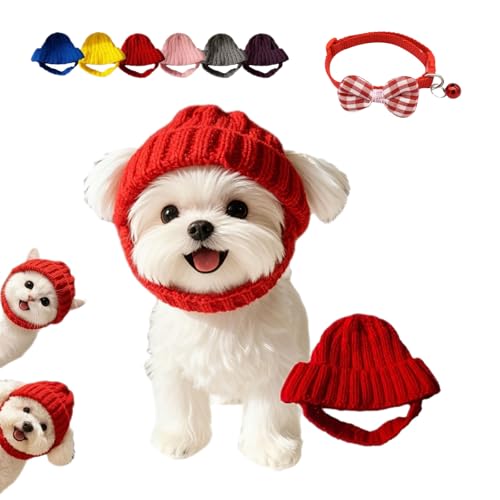 2026 New Red Wool Knit Dog Beanie with Ear Flaps – Warm Winter Hat, Noise-Reducing Cozy Pet Cap, Toasty Ear Flap Warmth Indoor/Outdoor Cold-Weather Wear, Washable for Dogs & Cats (2PCS-A)