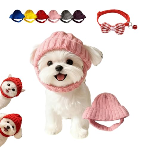 2026 New Red Wool Knit Dog Beanie with Ear Flaps – Warm Winter Hat, Noise-Reducing Cozy Pet Cap, Toasty Ear Flap Warmth Indoor/Outdoor Cold-Weather Wear, Washable for Dogs & Cats (Pink)