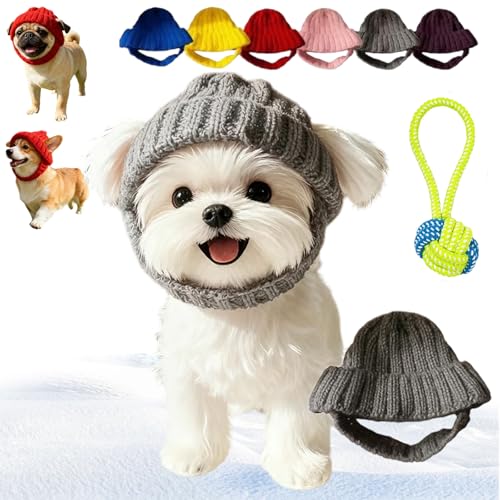 2026 New Red Wool Knit Dog Beanie with Ear Flaps – Warm Winter Hat, Noise-Reducing Cozy Pet Cap, Toasty Ear Flap Warmth Indoor/Outdoor Cold-Weather Wear, Washable for Dogs & Cats (Gray)