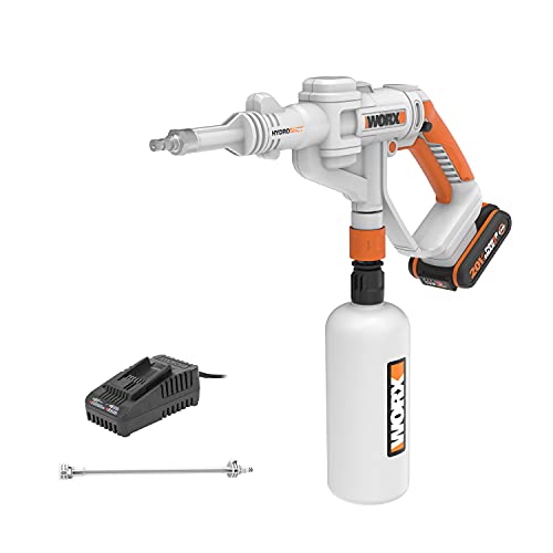 WORX Nettoyeur Haute Pression sans Fil 20V Hydroshot WG620E.10, Outil Mobile sans raccord d'eau Fixe, livré avec 1 Batterie 4Ah et Chargeur, Tuyau de 6m, Lance Courte, Adaptateur Bouteille