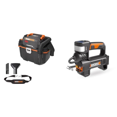 WORX Nitro - Aspirateur sans Fil Eau et poussières - 4 en 1-20V (Livré sans Batterie ni Chargeur) & Compresseur à Air et Projecteur LED sans Fil 20V - Gonflage de 0 à 150 PSI - avec Adaptateur