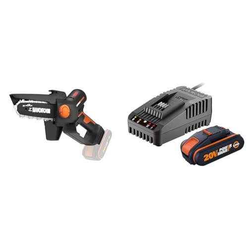 WORX NITRO - Elagueuse - Mini tronçonneuse sans fil 20V - Lame de 12 cm - WG325E.9 & Kit de démarrage pack Batterie et chargeur rapide 20V - PowerShare - WA3601